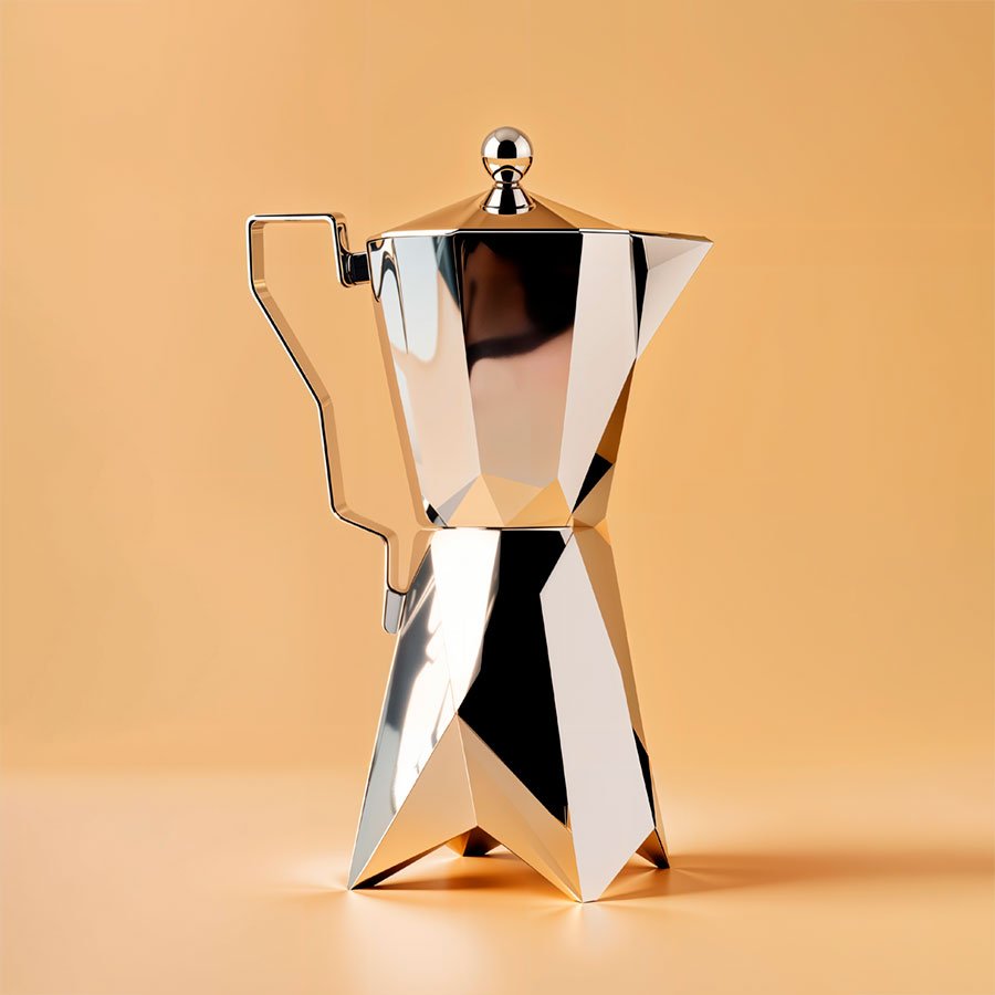 Apex 系列以雕塑般的幾何線條為靈感,將義式咖啡壺重新詮釋為一件能融入生活的藝術品。精準切面的金屬折角在光線下反射出獨特光澤,不僅呈現現代設計語彙,也象徵咖啡萃取時的力量與專注。